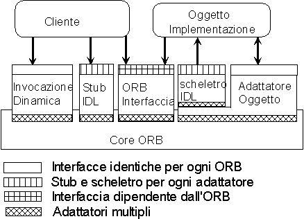 ORB è visto come un bus di interconnessione, che deve coordinare l’invocazione di servizi locali e remoti: