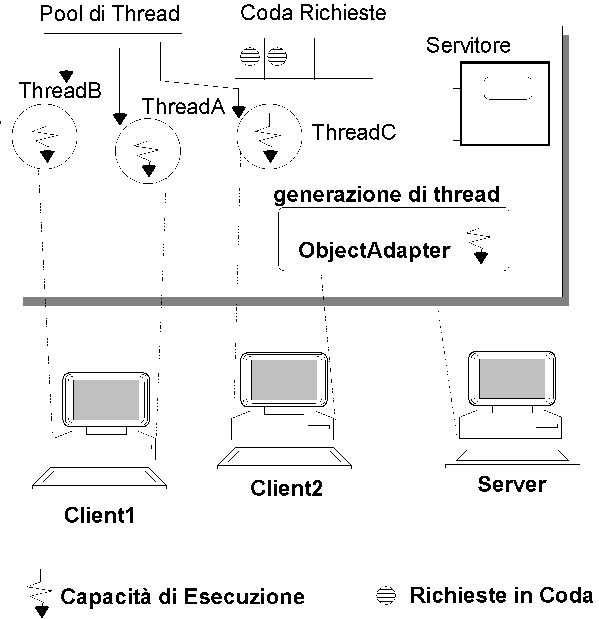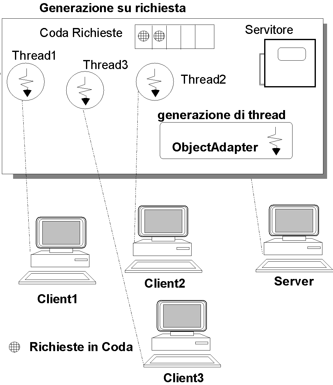 si genera un thread per ogni richiesta di servizio.