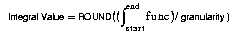 When computing the integral of the function over a given interval (for example, the start and end time of an activity), the result is divided by the granularity, and the result rounded: