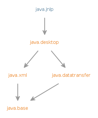 Requires Modifier Module Description transitive java.datatransfer Defines the API for transferring data between and within applications.transitive java.desktop Defines the AWT and Swing user interface toolkits, plus APIs for accessibility, audio, imaging, printing, and JavaBeans.Indirect Requires Modifier Module Description transitive java.xml Defines the Java API for XML Processing (JAXP), the Streaming API for XML (StAX), the Simple API for XML (SAX), and the W3C Document Object Model (DOM) API.