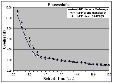 Figure 5. Overhead% of MAPI*ResManagers for process monitoring.